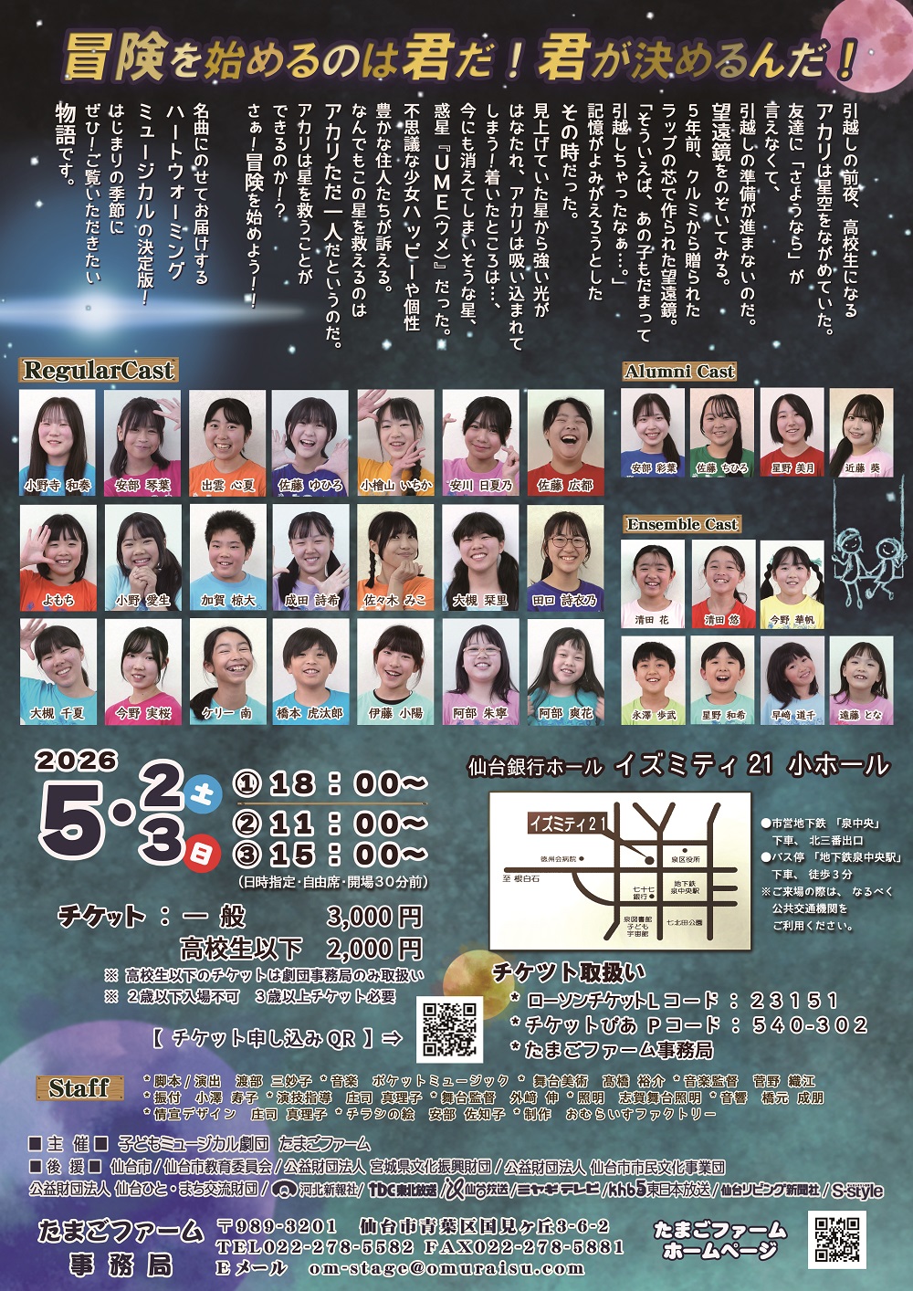 たまごファームオリジナルミュージカルの名作『いちばん星みつけたっ!』公演決定!